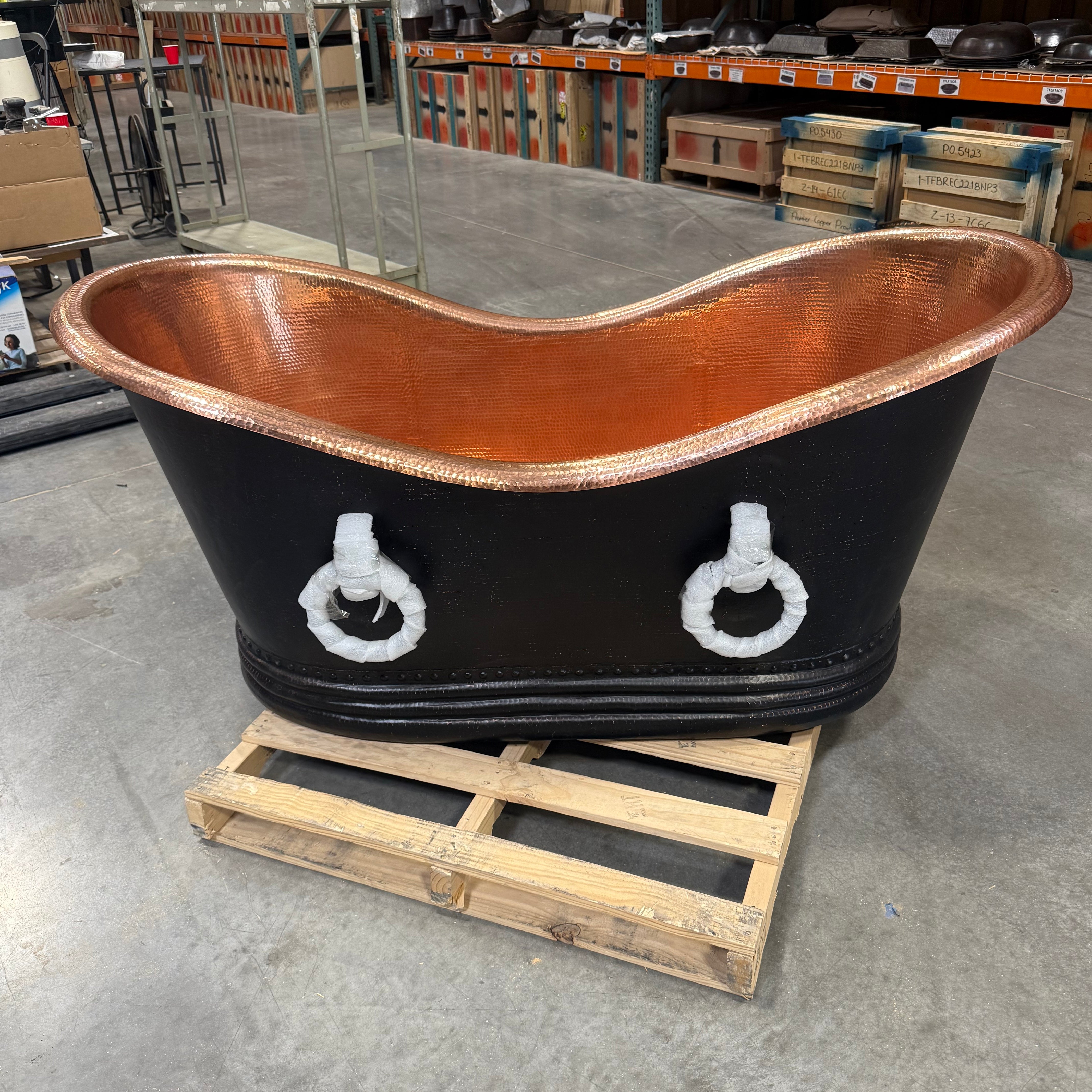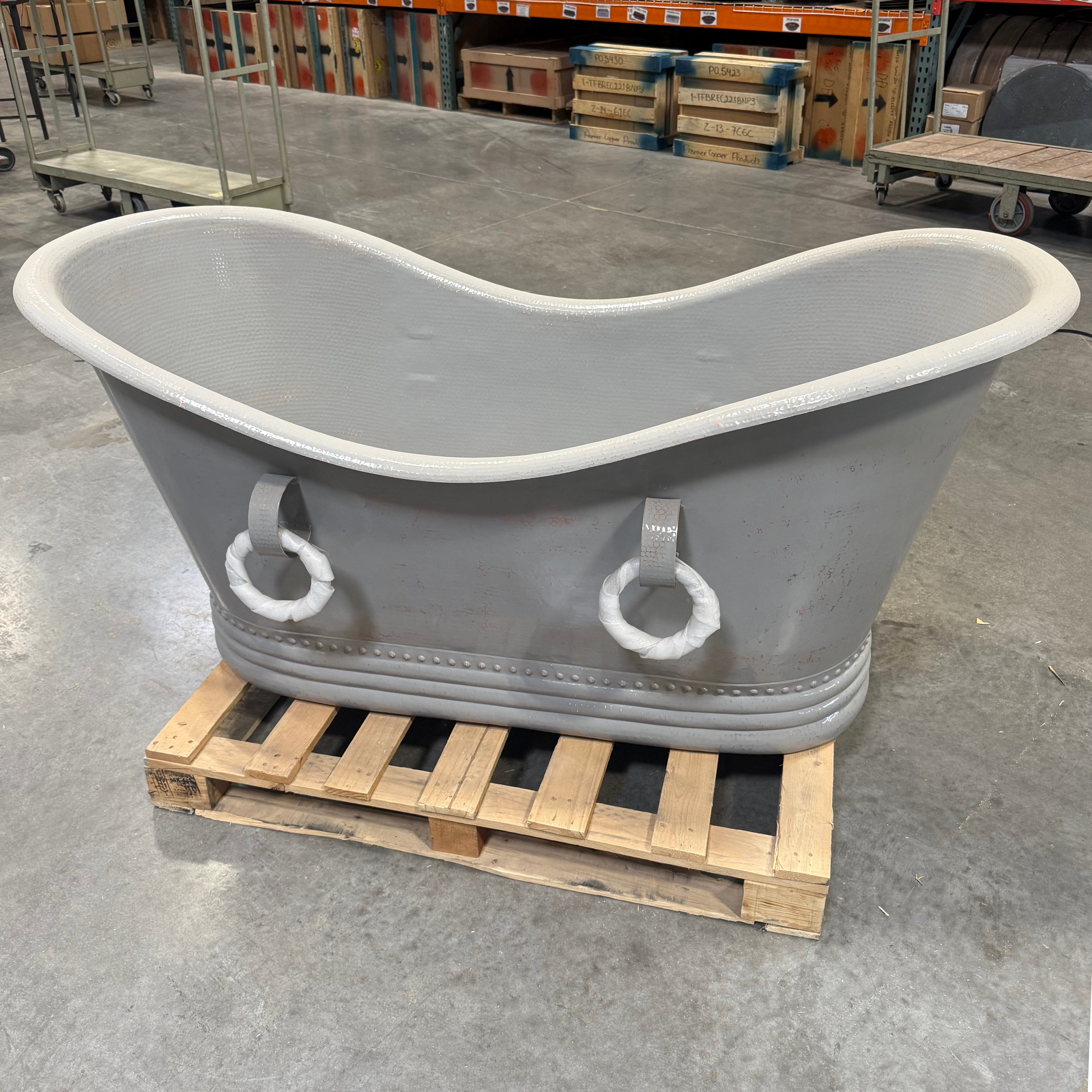 67" Hammered Copper Double Slipper Bathtub with Rings – Final Sale